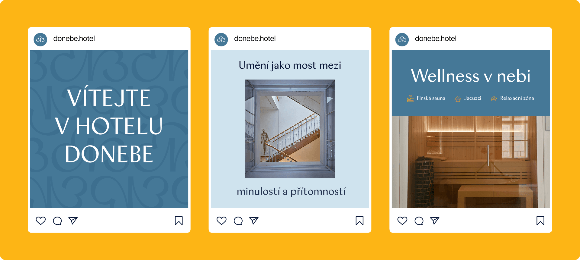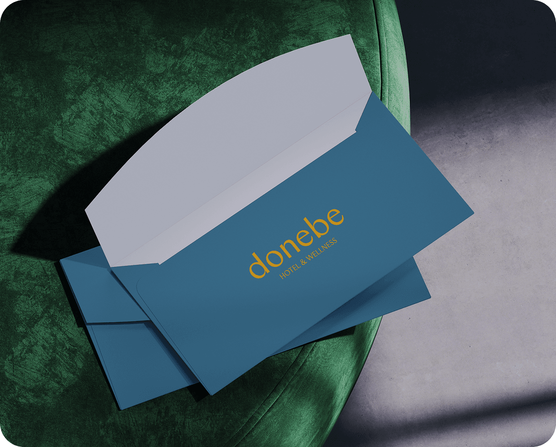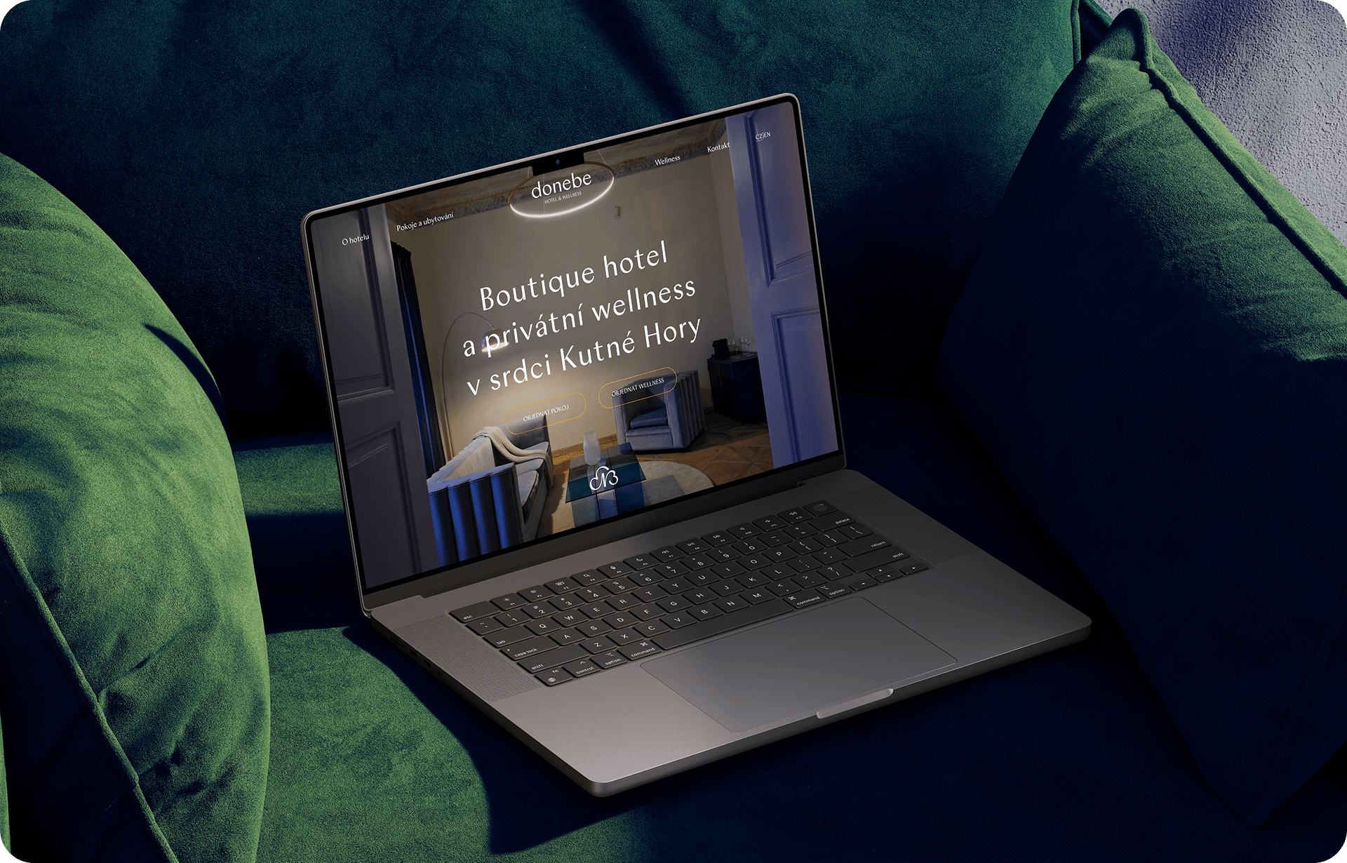 Donebe je wellness a boutique hotel orientovaný na zážitek, atmosféru, a genia loci. Naším úkolem bylo vytvořit značku, která nebude extrémně vyzdvihovat ani jeden ze zajímavých aspektů hotelu. Snažili jsme se najít průsečík mezi historií domu, moderním designem, uměním, luxusem a klidu.